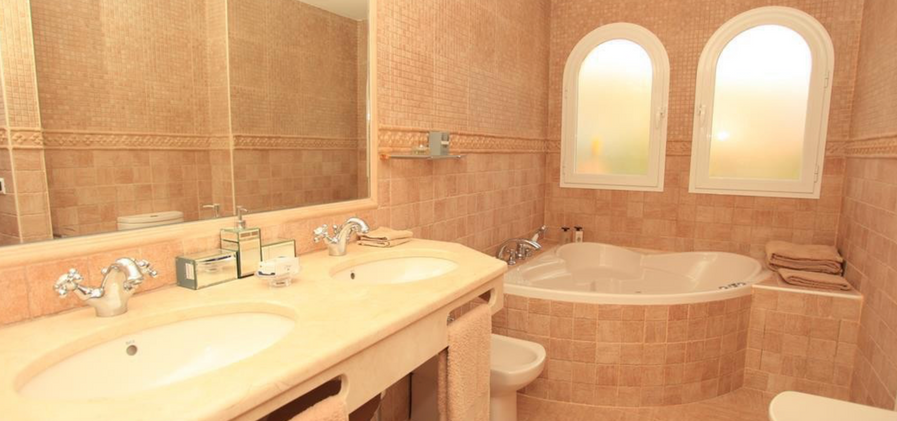 An elegant frontline golf villa with 6 bedrooms including underfloor heating throughout, gas fires, German kitchen and the dining room has the unique feature of a triple height ceiling.
